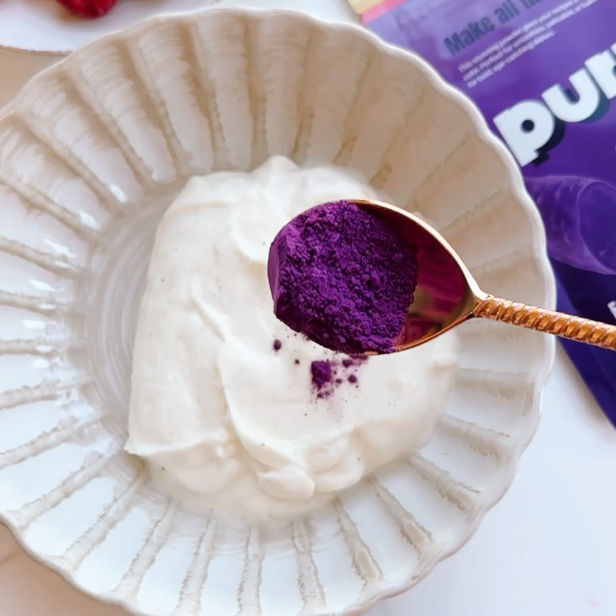 Utöver hälsan förbättrar detta mångsidiga pulver allt från smoothies och bakverk till pasta och desserter med en subtil, naturlig smak och vacker lila nyans — allt utan några artificiella tillsatser.